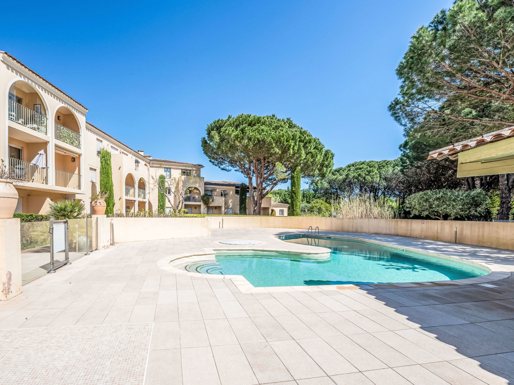 Gassin 2 km from Saint Tropez: Residence "Caesar Domus", 2 storeys. 59 apartments in the residence. 200 m from the sea, 800 m from the beach. For shared use: property 2 ha (fenced), well-kept garden, swimming pool (15 x 6 m, seasonal availability: 01.May. - 30.Sep.). Tennis. In the house: lift. Shop 1.5 km, grocery 800 m, supermarket 4.5 km, restaurant 800 m, bus stop "La Boullabaisse" 700 m, sandy beach "La Boullabaisse" 800 m. Sailing school 600 m, minigolf 4.5 km. Nearby attractions: Port de Saint Tropez 1.8 km, Parc d'attractions Azur Park 4.2 km, Plages de Pampelonne 6 km, Port Grimaud 6 km, Cannes 84 km, Nice 134 km. Well-known lakes can easily be reached: Lac de Sainte Croix 92 km. Hiking paths: Massif de l'Esterel 50 km. Please note: car recommended.