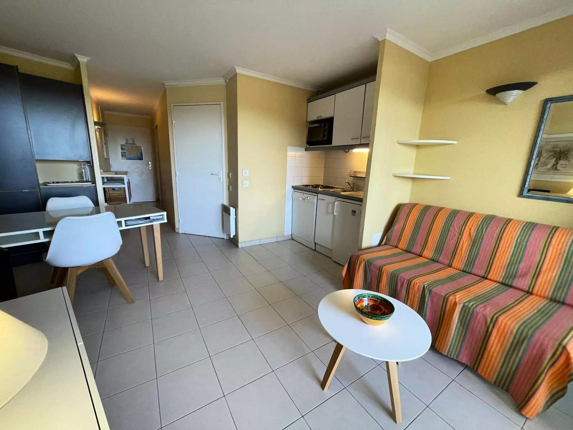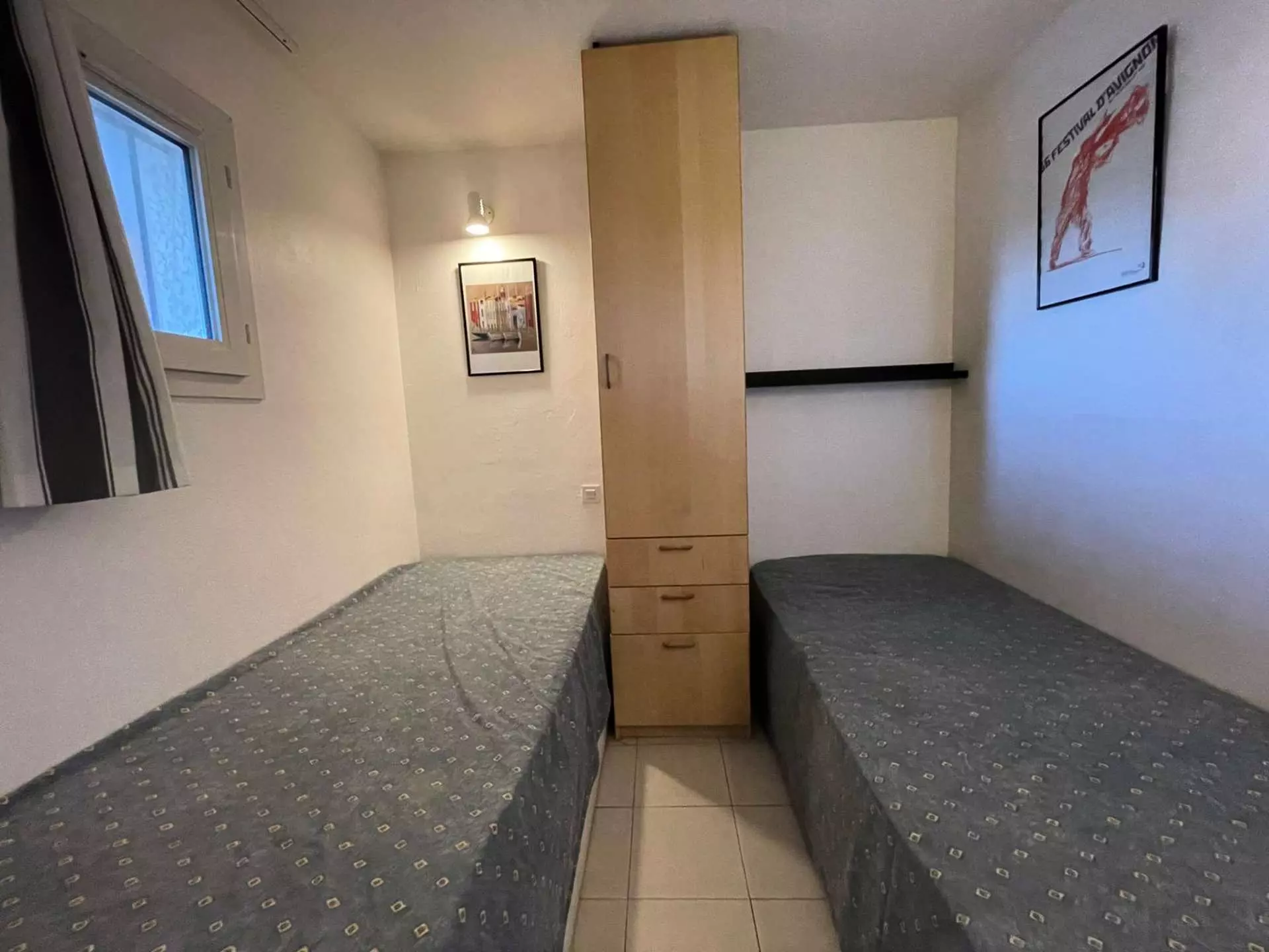 It is composed of a living room with a sofa bed, an equipped kitchenette, a bedroom with 2 single beds, a bathroom and WC.