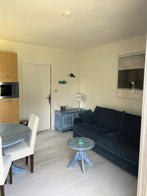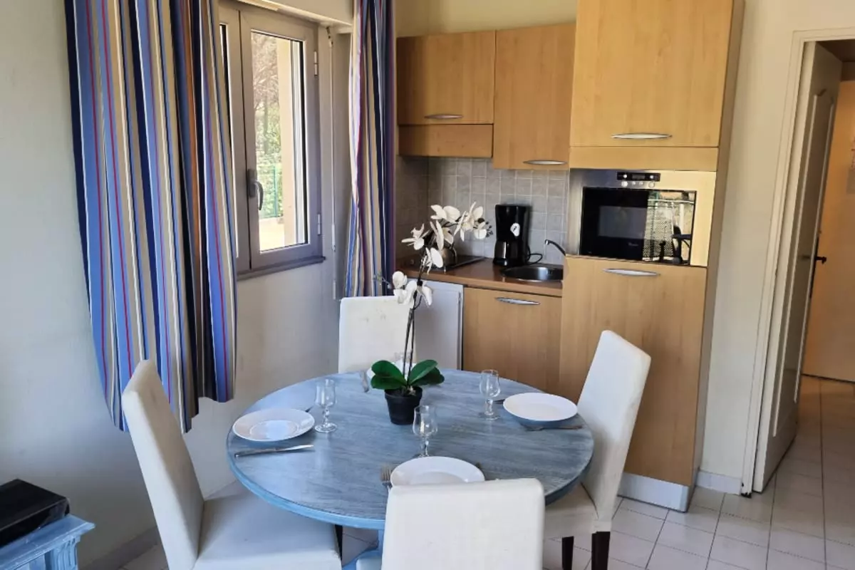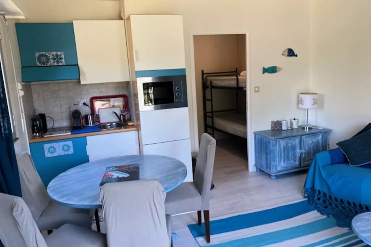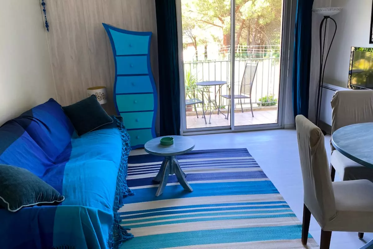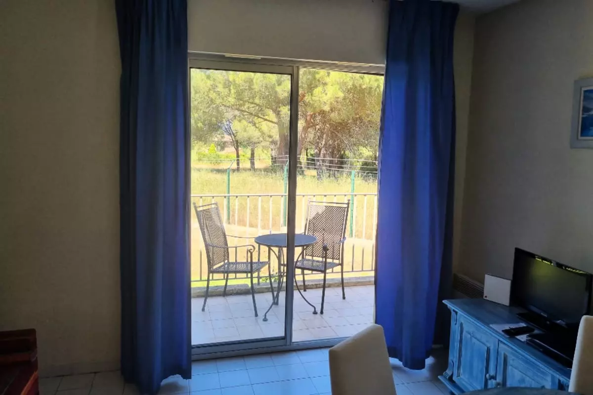 The apartment is fully equipped and perfectly suited for a tourist or business trip. It comprises a sofa bed for two people, two single bunk beds, a bathroom, and a small balcony that will be much appreciated in summer and can accommodate four people. The residence has a swimming pool and is nestled in the heart of a five-acre park overlooking the Gulf of Saint-Tropez. You will also have access to the garden at the corner of the studio!