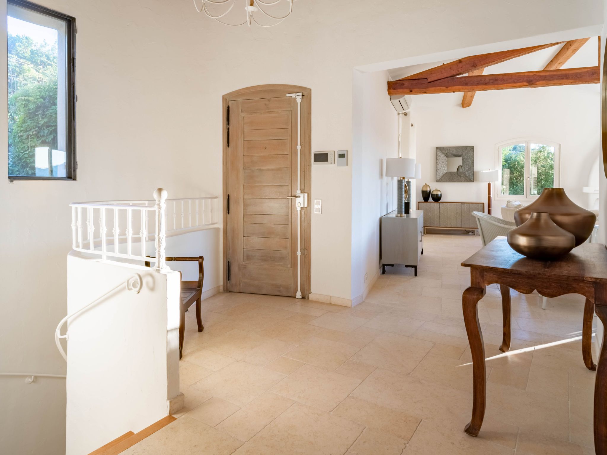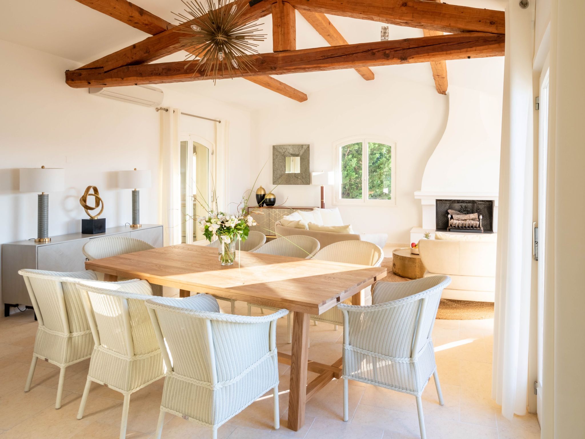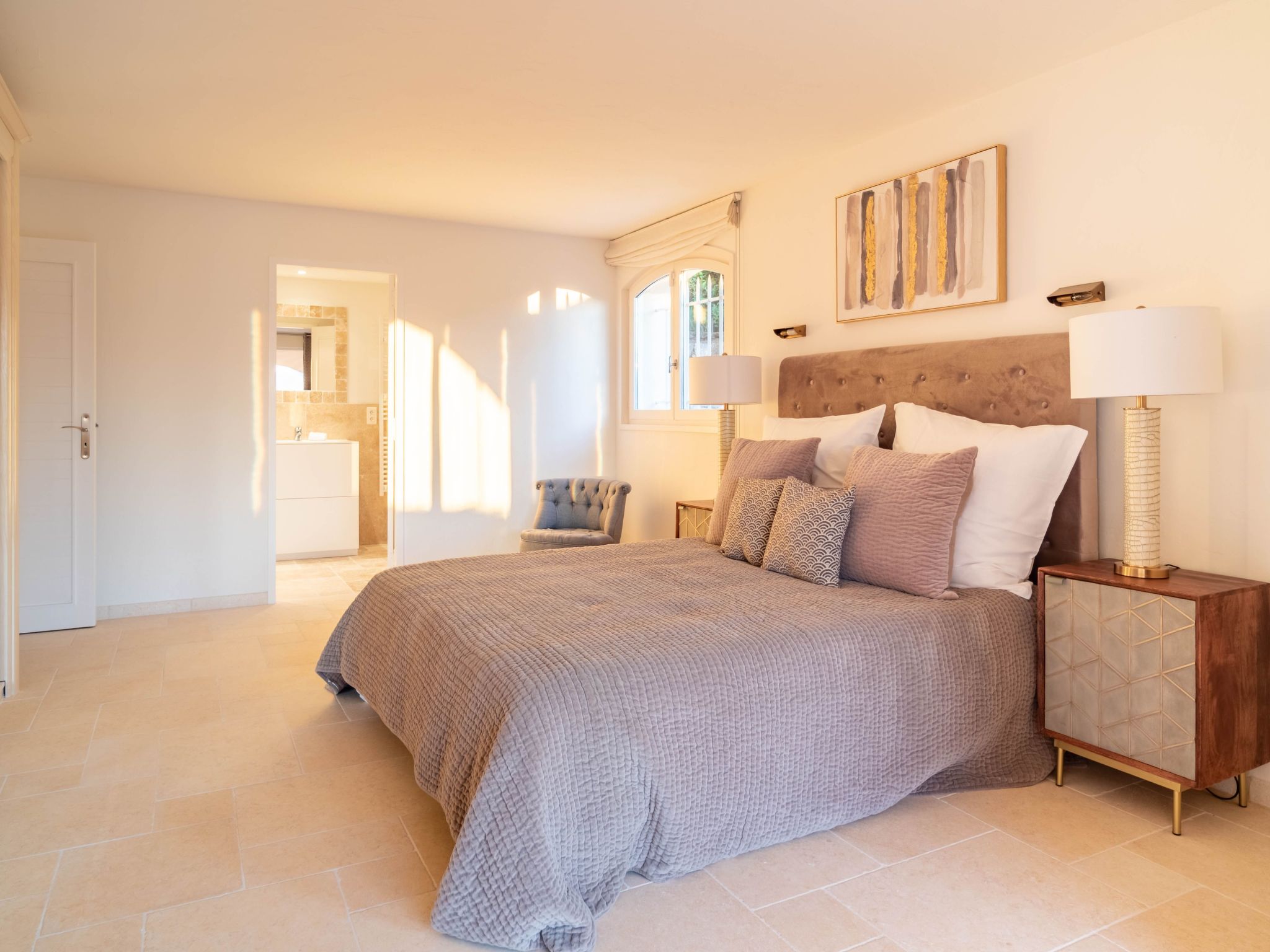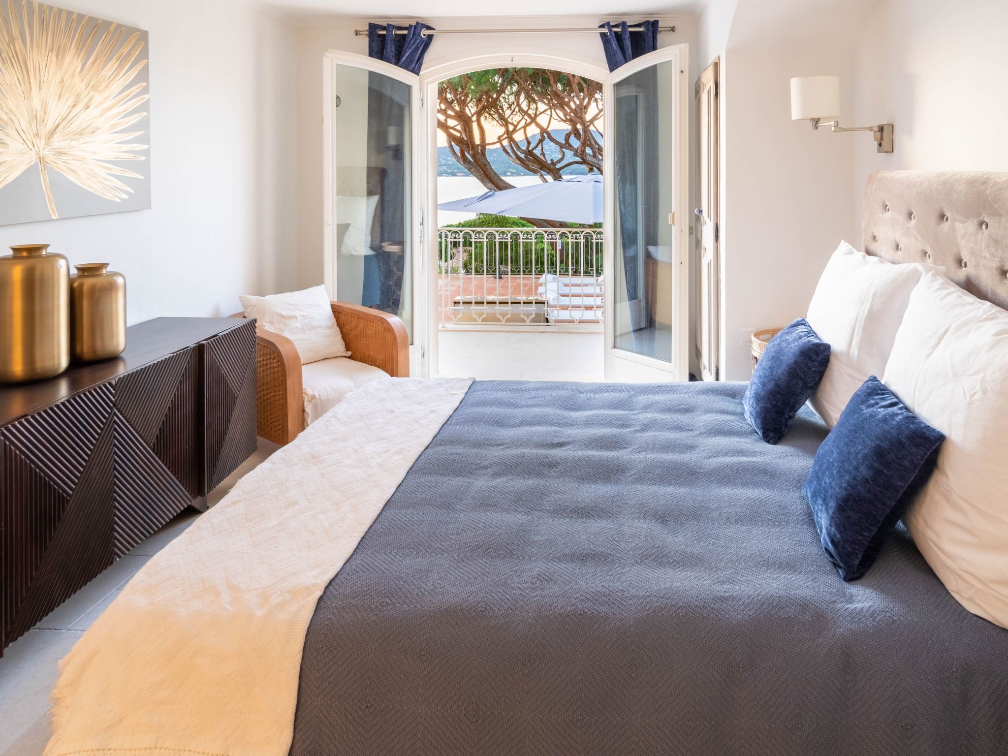 The villa is approximately 200 m2 and can accommodate up to 10 adults. It has been recently renovated and furnished with great taste and attention to detail to ensure comfort and well-being.One of the highlights of the villa is that it offers panoramic views over the Mediterranean Sea and the Gulf of Saint-Tropez.Access to the property is via an electric gate and a pretty pavement leading directly to the entrance and covered parking. The house has been built on a sloping plot and extends over two levels.On the upper level there is a bright living room with sofas and fireplace, a dining table for 10 visually separating the living room from the fully equipped open-plan kitchen, and a master bedroom with king-size bed, fitted wardrobes and en-suite bathroom.On the lower level there are the other four bedrooms: a master bedroom with king-size bed, fitted wardrobes and en-suite bathroom, two bedrooms sharing a bathroom and a bedroom with en-suite bathroom.Other amenities: WIFI, SONOS sound system, TV with international channels, fireplace, air conditioning and heating in all rooms, washing machine and tumble dryer, large soundproof windows, new, good-quality furniture and appliances, bath and pool towels, bed linen, daily professional cleaning except Sundays, concierge service on request.