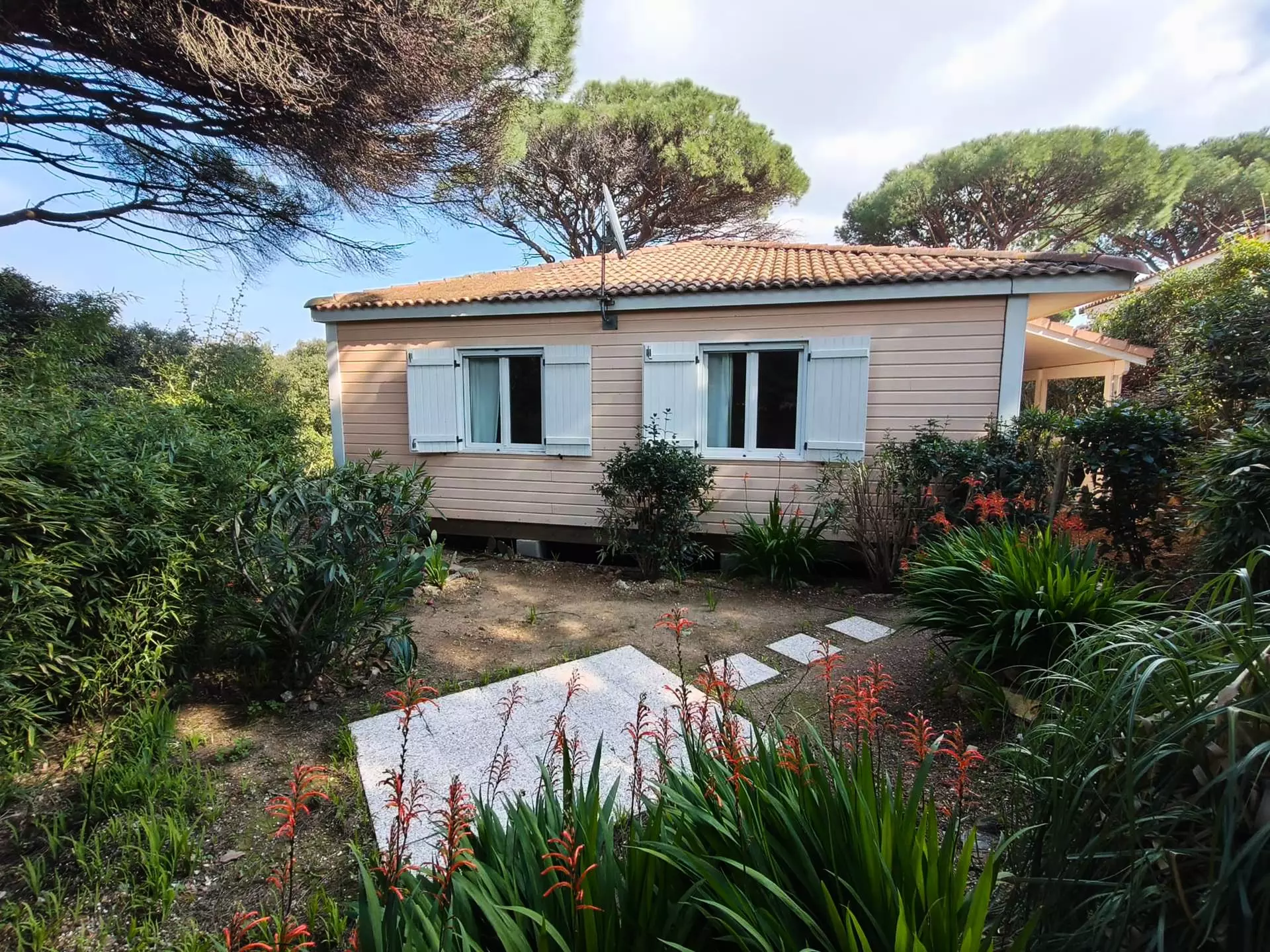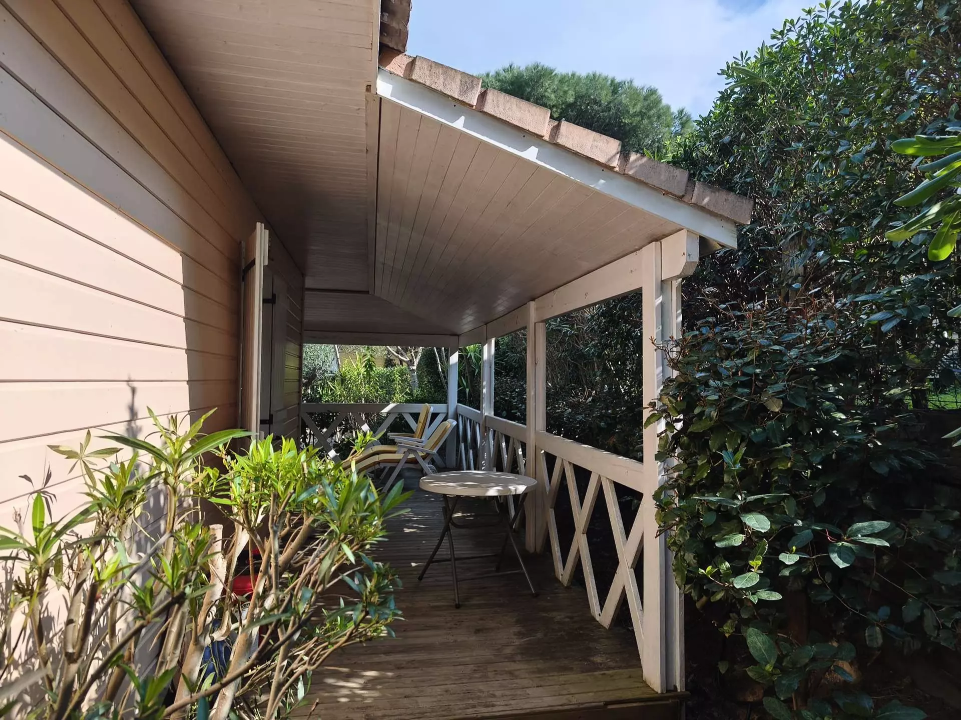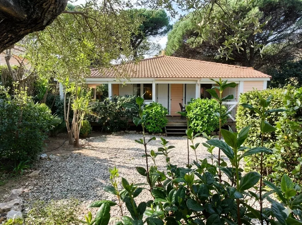 Discover an authentic stay between the sea and Provençal villages. Located just 7 km from Saint-Tropez, within the prestigious private and secure Parc Oasis estate, this lovely 60 m² wooden chalet is the ideal address for a relaxing holiday in the heart of a 15-hectare wooded park.